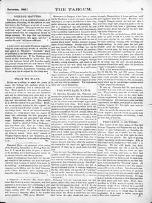 After the first game against Harvard, Tufts took its squad to Bates College in Lewiston, Maine for the first football game played in Maine.[26] This occurred on November 6, 1875.