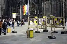 Messages denouncing the living conditions of Palestinian people were written on small cardboard pieces and suspended on clotheslines. The "Wailing Wall" was erected in 1991 in front of the south tower of the Cologne Cathedral, supported by a vigil against the Second Gulf War. The authorities attempted to stop the project multiple times, using lawsuits,[4] confiscations and evictions.