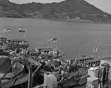 The frigate ARC Almirante Padilla[n 4] took to sea on November 1, 1950[26] under command of CC Julio Cesar Reyes Canal, stopping at San Diego, California, for fitting and then at Hawaii for operations training with the US Navy, finally reaching its destination at the Korean coast on May 14, 1951. Almirante Padilla performed operations with the escort groups GT95.5 and Blockade GT95.2, participated in the coastal bombardment at Wonsan and patrol runs at Wonsan, Seongjin and the islands of Cho-Do and Seok-Do; it finished its first tour on January 19, 1952.