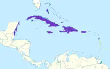It is a resident breeder mainly in the Bahamas, Cuba, Jamaica and Antigua. It breeds in smaller numbers in Hispaniola (the Dominican Republic and Haiti), Puerto Rico, the Virgin Islands, the Cayman Islands, Anguilla and other Caribbean islands. It also breeds along the Caribbean coast of Central America. In the United States, it is found only in the Florida Keys, Everglades, and the southern tip of mainland Florida.[15] They will often spend the winter in the Caribbean islands.