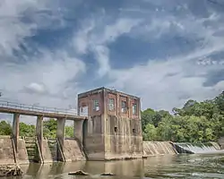 The construction of the hydroelectric station was completed in 1925.[2] It was designed by Freeland, Roberts and Co. and built by Foster & Creighton for the Southern Cities Corporation.[2]