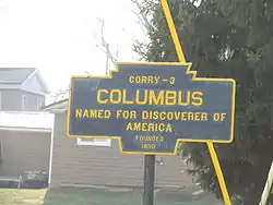 Columbus is a census-designated place[4] located in Columbus Township, Warren County in the state of Pennsylvania, United States. The community is located along the famous U.S. Route 6 in northwestern Warren County. As of the 2010 census,[5] the population was 824 residents. Columbus is within a few miles of the city of Corry, located in Erie County.