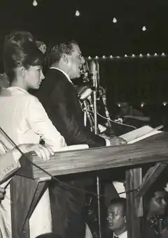 The Comício da Central, or Reforms Rally, was a rally held on March 13, 1964, in the city of Rio de Janeiro, at Praça da República, located in front of the Central do Brasil station.[1] With about 200,000 people[2] (or 150,000 people)[3] there they gathered to hear the words of the President of Brazil, João Goulart, and of the former governor of Rio Grande do Sul, Leonel Brizola.[4] The General Workers Command, organizer of the rally,[5] had been willing to take 100,000 people.[6] The João Goulart Institute has documents showing that there were plans for a bombing of the rally, which was abandoned so as "not to create a martyr".[7] At the time, there were reports of a sniper[8] and rumors that communists would carry out the attack and blame the military.[9] Goulart did not wish to go to the rally due to a heart condition, and to his wife, Maria Thereza Goulart, he said: "Teca, I'm going to fulfill my duty, even if it's the last one".[10]