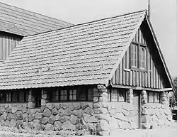 Over the next fourteen years, the infrastructure of Crater Lake National Park was developed in accordance with the park's master plan. As a result, park buildings from this era reflect a common character consistent with National Park Service's rustic design style. Comfort Station #4 was an element of the master plan. It was constructed in 1930 by National Park Service staff under the direction of Merel S. Sager, the park's landscape architect and a pioneer of the rustic style of park architecture.[1]