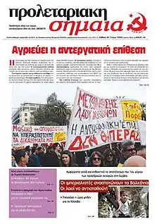 | Newspaper | Proletariaki Simaia (Proletarian Flag) |