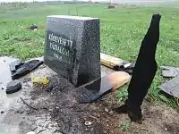 The Hungarian victims' monument in Čurug, shown here damaged.