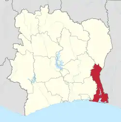 Comoé District (French: District du Comoé; pronounced [ko.mo.e], named for the Komoé River) is one of fourteen administrative districts of Ivory Coast. The district is located in the southeast corner of the country, bordering Ghana to the east, Zanzan District to the north, Lacs District and Lagunes District to the west, and the Atlantic Ocean to the south. The capital of the district is Abengourou.