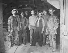 Comstock miners, 1880s. Caption on original: "To Labor is to Pray."