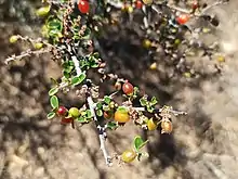 - ↑ "Granjero Rojo (Condalia velutina)" (in Spanish). iNaturalist. Retrieved 2022-06-15.