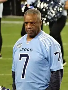 After leading the Volunteers to three bowl game appearances from 1972–74, Holloway was drafted by the NFL in 1975—but only in the twelfth round, as a defensive back, by the New England Patriots (few pro teams had African-American quarterbacks at that time). Instead, Holloway went to the Canadian Football League, playing for the Ottawa Rough Riders starting in 1975.[6] Later, he moved to the Toronto Argonauts, capturing the CFL's Most Outstanding Player award in 1982 and guiding the Argos to a Grey Cup championship the following season—Toronto's first title in 31 years. Holloway finished his career with the BC Lions and was inducted into the Canadian Football Hall of Fame in 1999.[7]