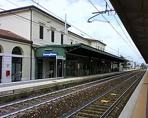 Conegliano (Italian: Stazione di Conegliano) is a railway station serving the town of Conegliano, in the region of Veneto, northern Italy. The station opened on 1 May 1855 and is located on the Venice–Udine railway and Ponte nelle Alpi-Conegliano railway. The train services are operated by Trenitalia.