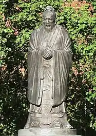 One of the most frequently visited landmarks in Chinatown is the 15-foot bronze statue of Confucius, the Chinese philosopher, in front of the complex. Sculpted by Liu Shih, the statue was presented by the Chinese Consolidated Benevolent Association as a token of appreciation, and to commemorate the U.S. bicentennial. At its base, a Confucian proverb is inscribed aside an American Flag, praising a just government with remarkable leaders of wisdom and ability.[2][3]