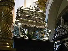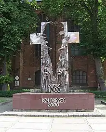 After his death in 997 during a mission among the pagan Prussian tribes, Bishop Adalbert of Prague was quickly canonized by the common effort of Duke Bolesław I and Emperor Otto III. Thus, Adalbert became the first Slavic bishop to become a saint.[1] His body, bought back by Bolesław from the Prussians for its weight in gold, was put into a tomb at Gniezno Cathedral, which became the ecclesiastical center of Poland.