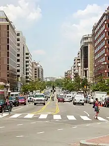 Connecticut Avenue is a major thoroughfare in the Northwest quadrant of Washington, D.C., and suburban Montgomery County, Maryland. It is one of the diagonal avenues radiating from the White House, and the segment south of Florida Avenue was one of the original streets in Pierre (Peter) Charles L'Enfant's plan for Washington.[1] A five-mile segment north of Rock Creek was built in the 1890s by a real-estate developer.[2]