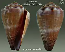 - 1 2 3 Conus biliosus (Röding, 1798). Retrieved through: World Register of Marine Species on 4 August 2011.