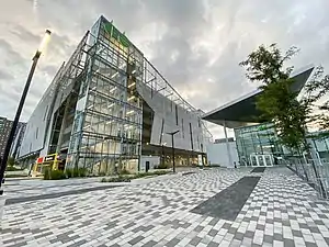 Demolition of the original Cooksville GO station building and portions of the parking lot began in 2018 in preparation for the construction of new station structures. The new station includes a multi-level parking structure, improved pedestrian access, and a connection to the planned Hurontario LRT.[6] Construction was completed on November 10, 2020,[7] at a cost of $128.4 million.[8]
