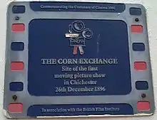 The use of the building as a corn exchange declined significantly in the wake of the Great Depression of British Agriculture in the late 19th century.[7] However, from the 1880s, parts of the Corn Exchange were rented out as a cinema.[2][8] It was one of Chichester's first cinemas, and the Corn Exchange has a blue plaque commemorating this.[5] In 1922, the Corn Exchange became a full-time cinema,[9] and the following year, the cinema was purchased by London and District Cinemas.[2] In 1927, the cinema was renovated, and was renamed the Exchange Cinema. The Kid Brother was the first film shown at the renovated cinema.[9]