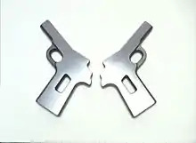 Avoided Object is an ongoing series of smaller works which have been developed in liaison with various institutions, including the Royal Armouries, British Police Forces and Madame Tussauds. These "avoided" objects have often had their identities transformed by being burned, shot, squashed, stretched, drawn, exploded, cut, or simply dropped off cliffs. Cartoon deaths have long held a fascination for Parker: "Tom being run over by a steamroller or Jerry riddled with bullet holes. Sometimes the object's demise has been orchestrated, or it may have occurred accidentally or by natural causes. They might be 'preempted' objects that have not yet achieved a fully formed identity, having been plucked prematurely from the production line like Embryo Firearms 1995. They may not even be classified as objects: things like cracks, creases, shadows, dust or dirt The Negative of Whispers 1997: Earplugs made with fluff gathered in the Whispering Gallery, St Paul's Cathedral). Or they might be those territories you want to avoid psychologically, such as the backs, underbellies or tarnished surfaces of things."