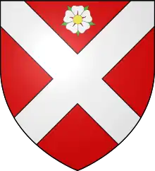 The coat of arms borne by the heads of the family was blazoned gules, a saltire, in chief a rose argent. The same arms were borne by the Corries of Newbie. According to Alexander Nisbet, the Corries of Kelwood bore the same arms but differenced with a chief sable (as illustrated in Pont's manuscript);[13] according to R. R. Stodart, they differenced their arms with a chief argent.[14]