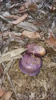 Cortinarius archeri is a species of mushroom in the genus Cortinarius native to Australia. The distinctive mushrooms have bright purple caps that glisten with slime, and appear in autumn in eucalypt forests.