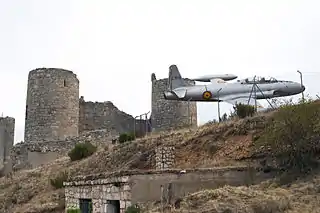 It contains the ruins of an ancient Muslim castle, later converted for use by Castilian counts, which sits atop a hill that looks over the town. It also contains the Romanesque chapel of Santo Cristo. The village claims to be the venue for the first human flight by air pioneer Diego Marín Aguilera, who was born in the town (a plane was placed by the Spanish Air Force by the castle as a reminder of this claim).[2] It was the birthplace of Bishop Agustín of Popayán, Colombia.