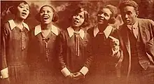 Four prior members, who were blind, formed the band Five Blind Boys of Mississippi after they gained a new member.[3] The CD The Piney Woods School Cotton Blossom Singers in concert was released in 2002.[4] The 2010 book It's Cotton Blossom Time details the history of the Cotton Blossom Singers.[2] Groups of the Cotton Blossom Singers continue to perform, including during the spring of 2021.[5][6]