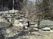 ![]() Well-exposed natural outcrop of the Cottonwood Limestone alongside the Konza Prairie Nature Trail | |