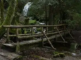 ![]() Coal Creek Falls foot bridge with falls in background | |