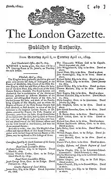 - ↑ London Gazette