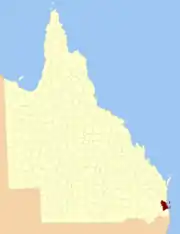 The County of Stanley is a cadastral division centred on the city of Brisbane in Queensland, Australia, that is used mainly for the purpose of registering land titles. It was named after Edward Stanley, who was three times British prime minister in the 1850s and 1860s.[1] It is bounded by the Logan River in the south, the Brisbane River at what is now Lake Wivenhoe in the west, the Stanley River at what is now Lake Somerset in the north-west, and Caboolture River in the north. It includes Moreton Island and Stradbroke Island, and extends west to Ipswich's CBD, south to Loganlea and north to Morayfield.