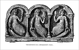 Coventina was a Romano-British goddess of wells and springs. She is known from multiple inscriptions at one site in Northumberland, England, an area surrounding a wellspring near Carrawburgh on Hadrian's Wall. It is possible that other inscriptions, two from Hispania and one from Narbonensis, refer to Coventina, but this is disputed.[1]