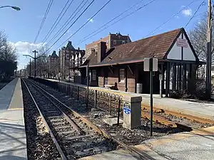 The station opened on December 17, 1913, with the initiation of rail service on what is now Shaker Boulevard.[2]:12 The rail line was in the nature of a streetcar line, and it ran from the existing tracks on Fairmount Boulevard, south on Coventry Road, and then east along the newly laid-out boulevard, initially an extension of Coventry. At that time, there was no Shaker Boulevard west of Coventry, and Coventry did not extend south beyond Shaker. The line was built by Cleveland Interurban Railroad (CIRR) and operated by the Cleveland Railway until 1930. The railway also operated the streetcar line on Fairmount Boulevard. Trains ran from the terminus at Fontenay Road, down Coventry Road, and then to downtown Cleveland using the Cleveland Railway tracks from Fairmount Boulevard.
