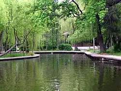 The artificial lake in Crâng park. One of its islands is visible to the left.