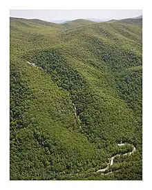 Crabtree Falls is one of the tallest sets of waterfalls in the United States east of the Mississippi River. It is located in the George Washington National Forest in Nelson County, Virginia, off of Virginia State Route 56. The name of the falls is thought to have come from William Crabtree, who settled in this part of Virginia in 1777. L.A. Snead, former US Assistant Fuel Administrator (WWI), environmentalist and notable Nelsonian, spearheaded negotiations to secure land surrounding Crabtree Falls after it was almost developed as a resort area in the late 1960s. Using personal and Congressional funds, the land deals were completed and the deeds transferred by LA Snead on June 3, 1968, to the National Forest System. This assured benefit for future generations of this magnificent Nelson County treasure.