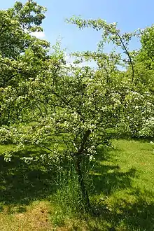 Crataegus × sinaica is a hawthorn that originated as a hybrid between two other hawthorn species, C. azarolus in series Orientales and C. monogyna in series Crataegus. It has been placed in the nothosection Orientaegus.[1] It grows in the central and eastern parts of the Mediterranean region on rocky mountain slopes.[1] In Egypt it grows in the mountains near Saint Catherine in South Sinai, where it is known as za'rur or za'rur al-awdiyah.[2]