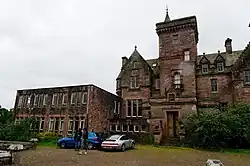 In 1940 the house was purchased for use as a school,[1] and in 1941, pupils were evacuated from Belmont House School in East Renfrewshire to Crawfordton House, which had been converted into a preparatory school for this purpose. Extensions were built during the 1970s and 1980s,[4] though these are excluded from the listed building.[1] In 1995, Crawfordton House School closed down. The house was then run as Cademuir International School, which relocated from the Scottish Borders, but which ceased trading in 2006 due to financial difficulties.[5]