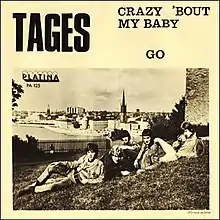 "Crazy 'Bout My Baby" was eventually released on Tages 2 through Platina Records on 4 August 1966, approximately during the same time "In My Dreams" peaked on the charts.[15][16] Platina would then demand a follow-up to "In My Dreams" when it dropped off the chart in mid-September, and the group chose "Crazy 'Bout My Baby" as the follow-up.[9] The single was released on October 21, 1966, backed with the group's original composition "Go" by Platina Records.[10][9] The single first entered Kvällstoppen on November 15, at a position of 19, before going to number 18 the following week.[17] On December 29, the single peaked at number 16 before dropping off the chart completely.[17] It did not even enter Tio i Topp, being voted off at a position of number 15.[18]
