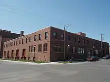 The buildings in the district include multi-story wholesale and transfer warehouses, large and small-scale multi-story factories, and small-scale mixed-use buildings. Some of Davenport's most prominent architectural firms contributed buildings.[3] Most of the buildings were built in the Vernacular commercial style. These structures feature segmental brick window arches, stone lintels, and brick corbelling along the cornice line. The first Sieg Iron Company building at 312 East Fifth Street and the Davenport Paper Box Company building at 310 East Fourth Street exemplify this style. The Smith Brothers and Burdick Company building at 427 Pershing Avenue and the Halligan Coffee Company building at 402 East Fourth Street were designed in the Neoclassical style. They were the product of Temple, Burrows, and McLane. Both buildings have a main floor and a cornice that are set off by stone and metal Classical ornamentation. In between is a multi-story shaft that contains segmental and flat-arched windows. The Sickles, Preston and Nutting Company building at 511 Pershing Avenue and the second Sieg Iron Company building at 500 Iowa Street were designed by Davenport architect Arthur Ebeling. They are typical of his style which features simple, functional buildings with minimal ornamentation and practical floor plans. The Davenport architectural firm of Clausen & Kruse contributed the Crescent Macaroni and Cracker Company building at 427 Iowa Street and both Ewert and Richter Transfer and Storage Company buildings at 320 East Fourth Street.