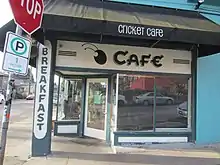 Cricket Cafe is a restaurant on Belmont Street in the retail and residential district of the same name within southeast Portland's Sunnyside neighborhood. The two-level cafe, described by Eater Portland's Mattie John Bamman in 2017 as a "long-running, highly popular breakfast spot" with "huge portions" and "good prices", serves breakfast all day and has a lunch menu as well.[1] In her Food Lovers' Guide to Portland, Oregon (2014), Laurie Wolf said the cafe delivers "hearty and satisfying" meals and "caters to the throngs of people in Portland who love their breakfast".[2] The restaurant operates from 8am to 2:30pm every day, as of 2018.[3]