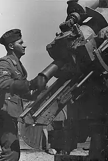 ![]() Croatian legionnaire manning an anti-aircraft (AA) gun | |