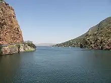 The Crocodile River has its source in the Witwatersrand mountain range, originating in Constantia Kloof, Roodepoort, Gauteng province. The first dam on the river is the Lake Heritage Dam just west of Lanseria International Airport. Just north of this airport is its confluence with the Jukskei River. Further downstream into the North West province are the Hartbeespoort Dam[3] and the Roodekoppies Dam. Beyond the Hartbeespoort Dam, the stream passes the town of Brits. The Elands River joins downstream from the Vaalkop Dam, about 20 km further the Pienaars River joins its right bank, shortly after exiting the Klipvoor Dam.