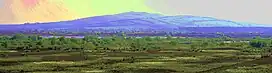 Croghan Hill (Irish: Cnoc Cruacháin or Brí Éile) is a hill with a height of 234 metres (768 ft) in County Offaly, Ireland.[1] The remains of an extinct volcano,[1] it rises from the Bog of Allen and dominates the surrounding plains. Historically known as Brí Éile, it is mentioned in Irish mythology and is traditionally seen as a sacred hill. On the summit is an ancient pagan burial mound with panoramic views, which reputedly became the inauguration site of the kings of Uí Failghe. On the eastern slope is an old graveyard and the remains of a medieval church, while at the western foot of the hill is the remains of a medieval settlement, church and castle. An ancient bog body, Old Croghan Man, was found nearby. The village of Croghan is at the southern foot of the hill.
