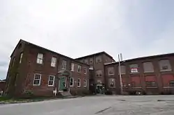 The Crompton Mill Historic District is a historic district encompassing a mill complex at 20 Remington Street, 53 and 65 Manchester Street in West Warwick, Rhode Island. The mill complex consists of a collection of mainly brick buildings, bounded by the Pawtuxet River and Pulaski, Remington, and Manchester Streets in the village of Crompton. The mill complex formerly extended across the river, but the complex on the west bank was destroyed by fire in 1992. The oldest elements of the complex are the dam site and some of the raceways that provided water power to the mills. The present dam was built in 1908, replacing an 1882 structure. The raceways were built in 1807, around the time of the first mill buildings. The stone Mill No. 1, built 1807, is believed to be the oldest stone mill building in the state. Most of the complex's buildings were built in the late 19th and early 20th centuries by the Providence Manufacturing Company and its successors. The mill was used for textile (mainly cotton) processing until 1946, when the Crompton Corporation ended production.[2]