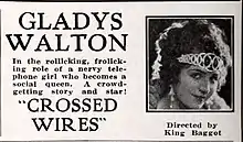 Crossed Wires is a 1923 American comedy film directed by King Baggot and written by Hugh Hoffman. The film stars Gladys Walton, George Stewart, Tom Guise, Lillian Langdon, William Robert Daly, and Kate Price. The film was released on May 14, 1923, by Universal Pictures.[1][2][3]