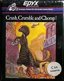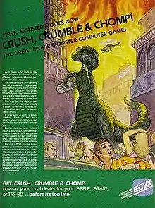 Crush, Crumble and Chomp! is a 1981 video game[1] where the player takes control of a movie monster and attacks a major city, such as New York or San Francisco. It was published in 1981 for the TRS-80, Apple II, and Atari 8-bit family. Ports to the VIC-20, Commodore 64, and IBM PC compatibles were released later. Some versions were published under the company's original name of Automated Simulations, while the rest use Epyx.