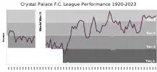 Chart showing Crystal Palace's table positions since joining the Football League.