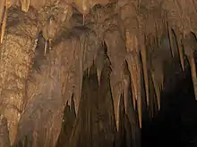 The cave is a limestone cavern over 10 km (6.2 mi) long, with a number of large chambers and spectacular rock formations. The temperature inside the cave generally remains near 19 °C (66 °F) and the humidity at 100%.