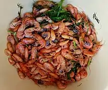 A traditional snack in Odesa is boiled shrimp, called "rachki", in the Odesite slang.