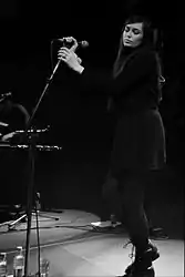 ![]() Madeline Follin and Brian Oblivion performing in 2014 | |