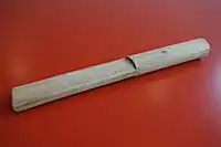 The ayaca is a dough of white corn flour, also known as masa harina, sugar, salt, aniseeds, finely grated cheese, butter and milk spread thinly is placed on a banana leaf. A stuffing consisting of stewed chicken and pork, capers, raisins, plums, olives, piccalilli, ham, peeled almonds, celery, parsley, gherkins and chili pepper is placed on top. The banana leaf is closed and made into a small, neat package, which is wrapped in a second leaf and then tied with packing string and boiled in boiling water. The prepared ayacas are then allowed to cool. Shortly before serving, the ayaca is warmed up and eaten stripped of the banana leaves. Ayacas are made and eaten during the Christmas and New Year holidays.[14]